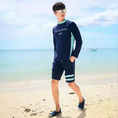 Sanqi men's two-piece fashion swimsuit long sleeve top five swimming trunks set boxer hot spring beach pants