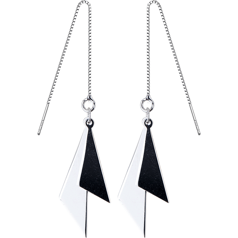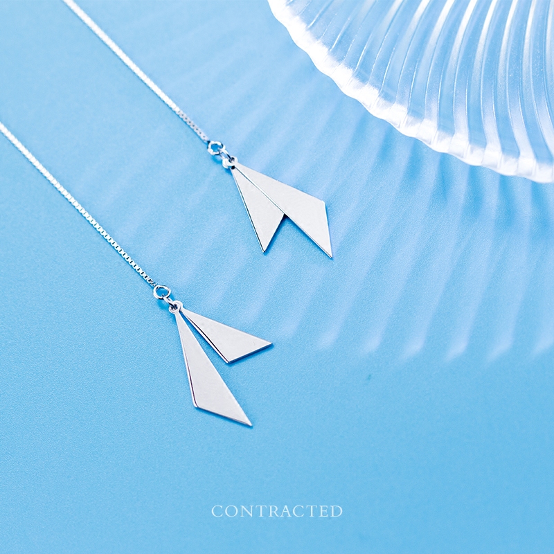 Love Loach s925 silver ear line female Japan-ROK wind minimalist glossy surface triangular long version of the ear chain geometric ear ornaments