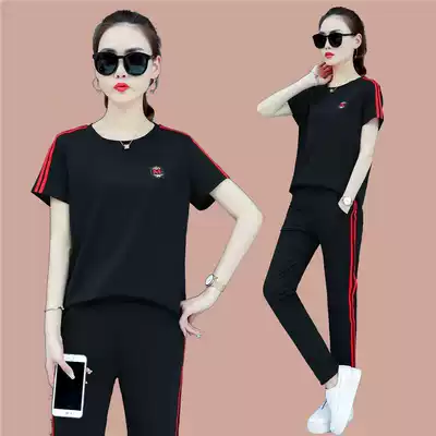 Running sportswear suit women's summer fashion women's slim sportswear cotton casual suit women's two-piece tide