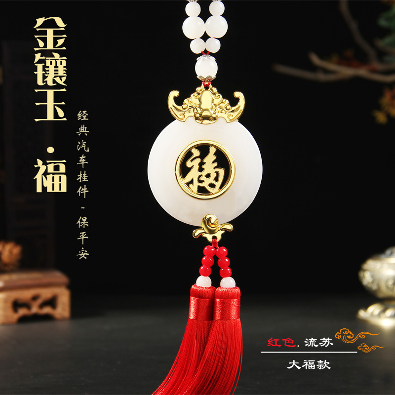 Car pendant gold inlaid jade hollow blessing pendant safety charm High-grade car interior decoration car rear mirror decoration