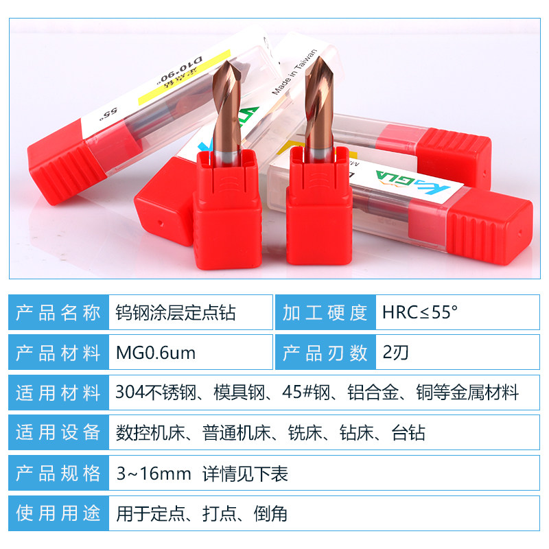 Taiwan KG55deg alloy tungsten steel 90 degree chamfering knife fixed-point milling cutter drill bit Straight shank drilling positioning center drill bit