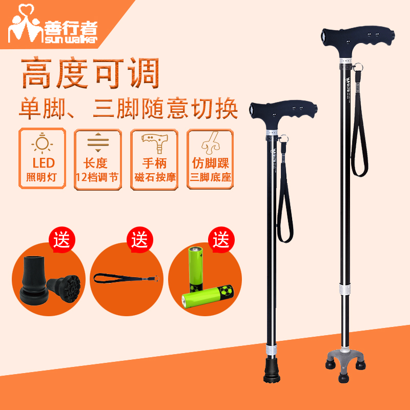 Good deeds for old people Walking Stick Four Feet of Walking With Light Multifunction Seniors Telescopic Non-slip Walking Stick Single-Footed Stick