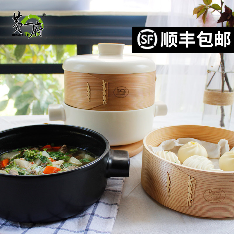 Yellow One Fu Casserole Steam Cage High Temperature Resistant Gas Saucepan Soup Saucepan Ceramic Pan Domestic Gas Cooker Special Stone Pan Cookware