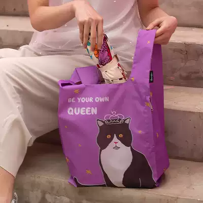 Original Meow medium foldable environmentally friendly shopping bag double-layer portable storage bag cloth bag tote bag