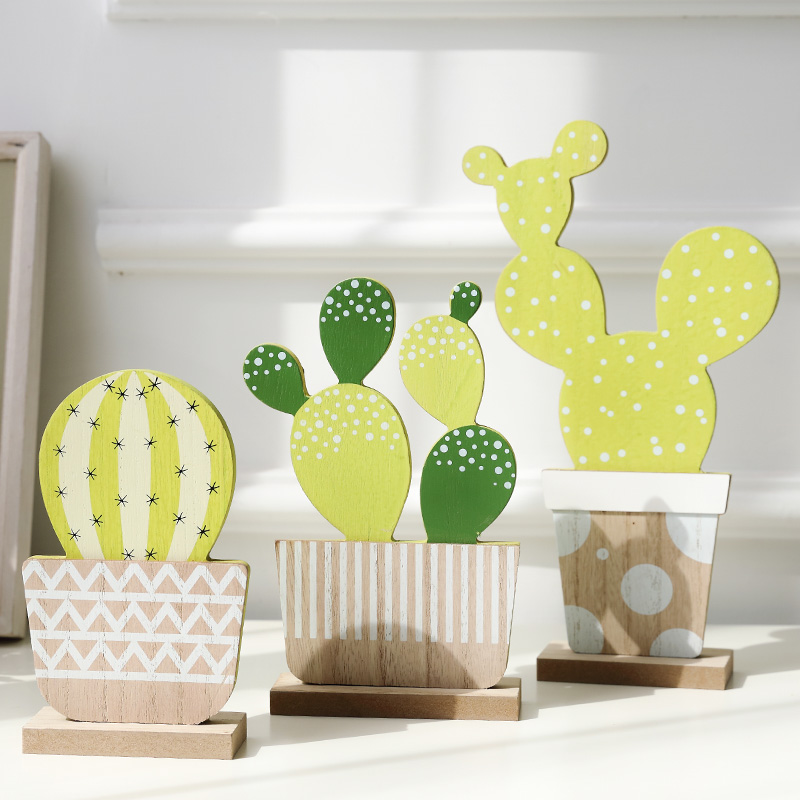 Nordic wooden cactus ornaments solid wooden ins room decorations TV cabinet study children's room small furnishings