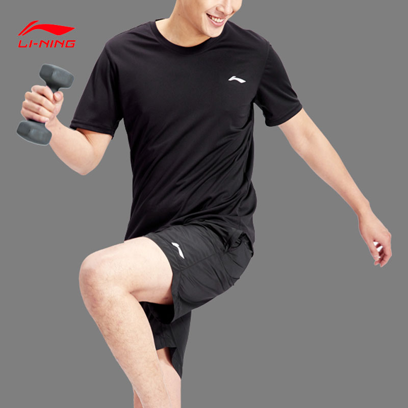 Li Ning sports quick-drying T-shirt summer round neck short sleeve breathable fitness running suit Casual sports solid color undershirt men