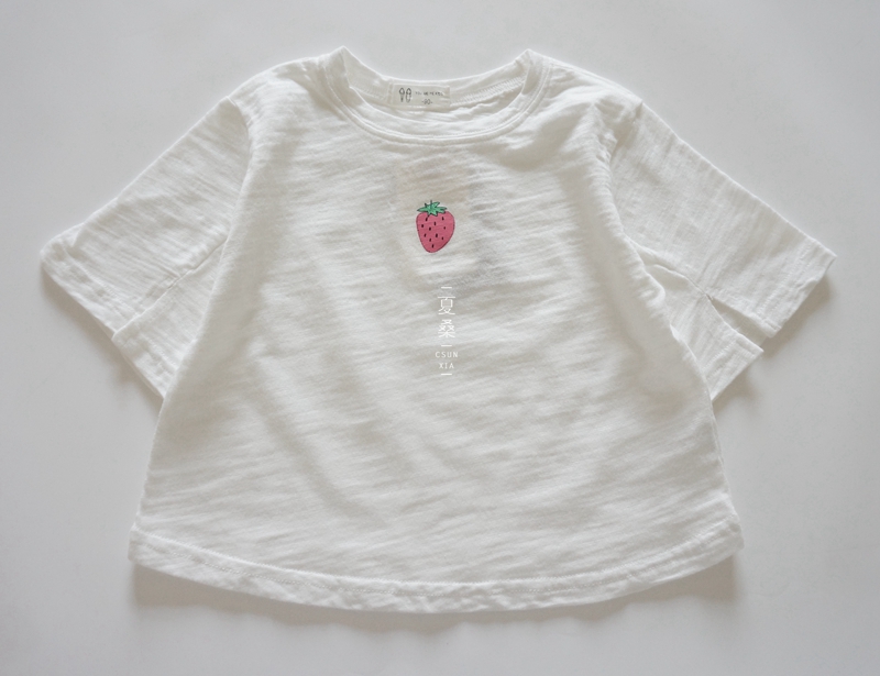 Fresh and sweet girl strawberry three-point sleeve crew neck top Princess style slub cotton can be matched with parent-child models