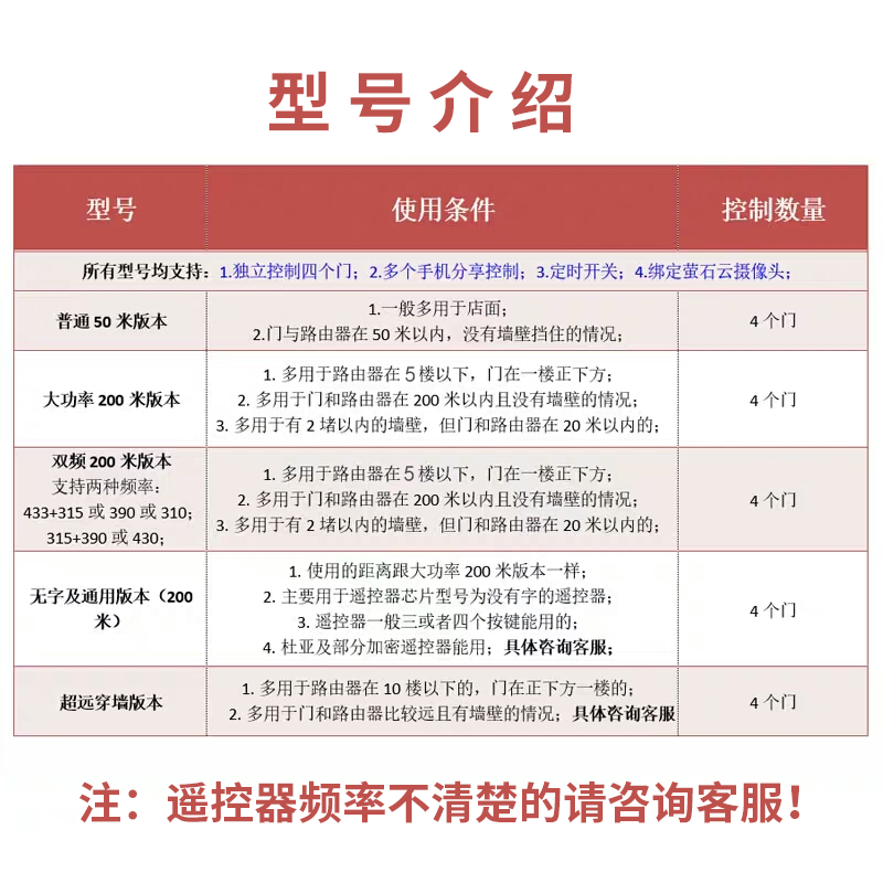 433 Wordless and universal version (with power supply)433 Dual antenna with power supply 433 Dual antenna without power 315 Dual antenna with power supply 315 Dual antenna without power 433 315