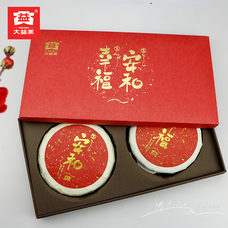 Gift tea Dayi Pu'er Tea Happiness Anhe Raw Tea Cooked Tea 400g 2 Pieces Seven Cake Gift Box Tea