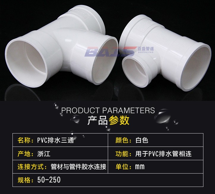 PVC Three-way Joint Drainage Pipe Separation Different Diameter Accessories 50 75 110 160 200 250 315