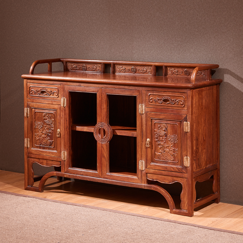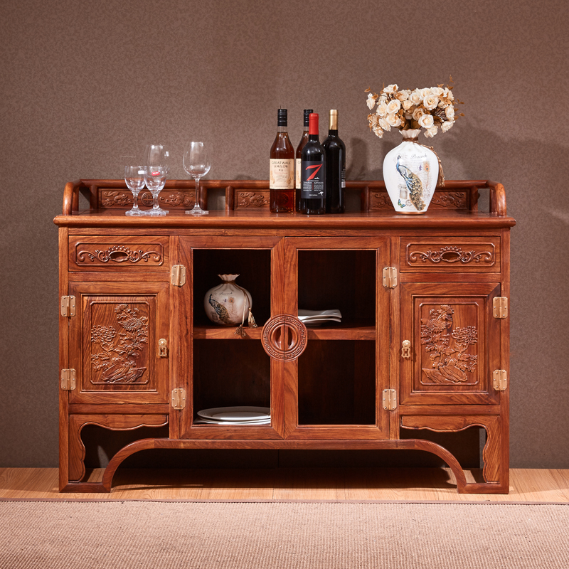 New Chinese Red Wood Dining Cabinet Solid Wood Dining Room Home Innate Hedgehog Purple Sandalwood Living Room Side Cabinet African Flower Pear Wood Small Wine Cabinet