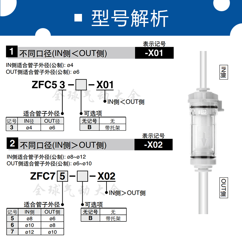 SMC pipe-type vacuum filter ZFC53-B-X02 ZFC75 ZFC76 ZFC77-B-X02 variable diameter