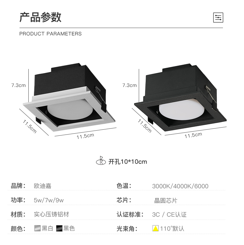 Black and white-5W Warm light (3000K) Black and white-5W Neutral light (4000k) Black and white-5W white light (6000k) Black and white-7 three-color dimming black