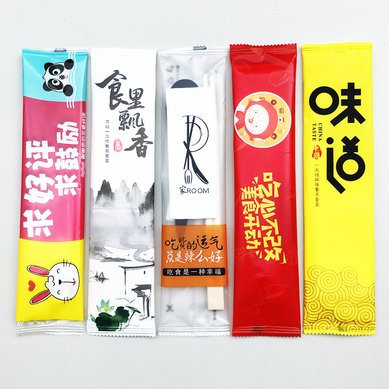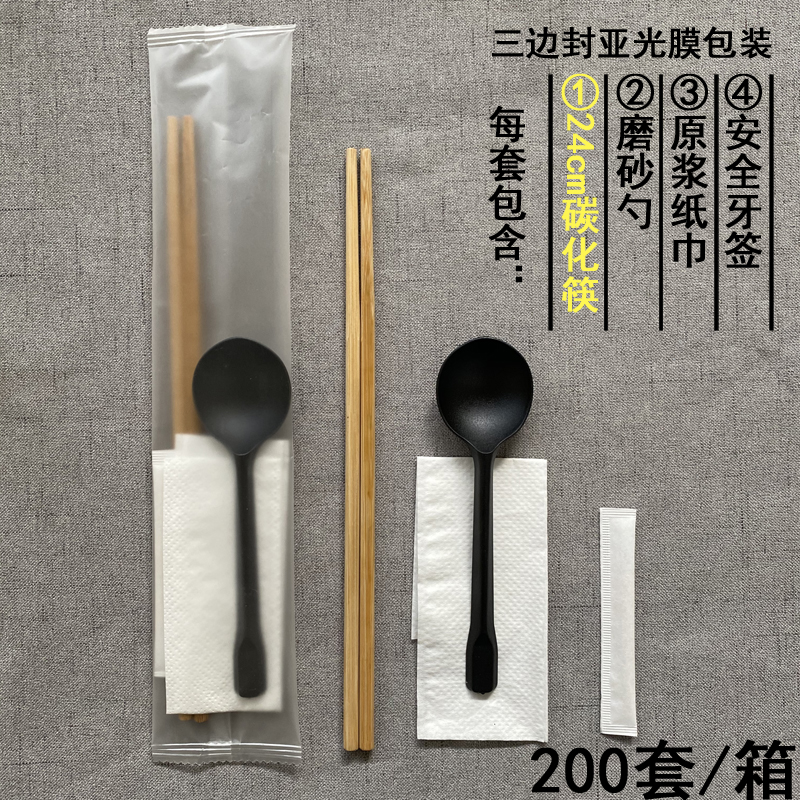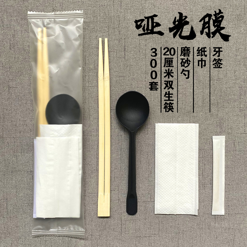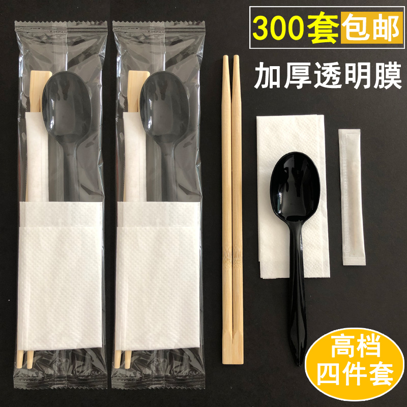 Disposable chopsticks four-piece set Four-in-one chopsticks set Transparent film delivery packing tableware spoon toothpick paper towel
