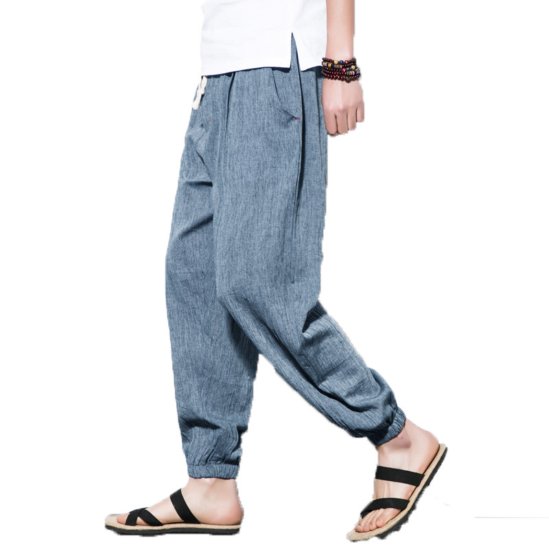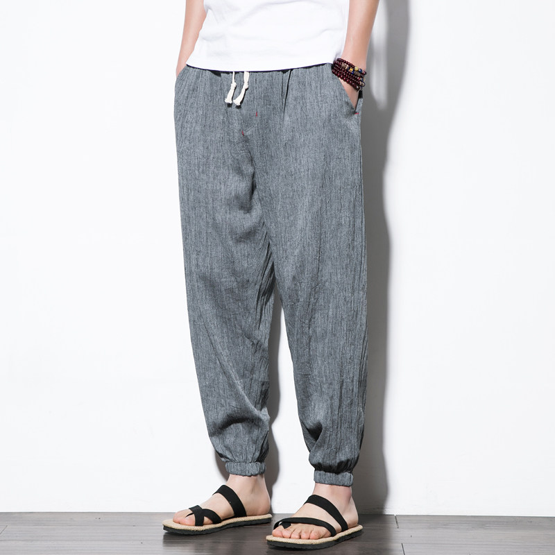 Summer clothing slim fit linen casual pants loose sport pants bungling cotton linen large size male hallen light cage pants