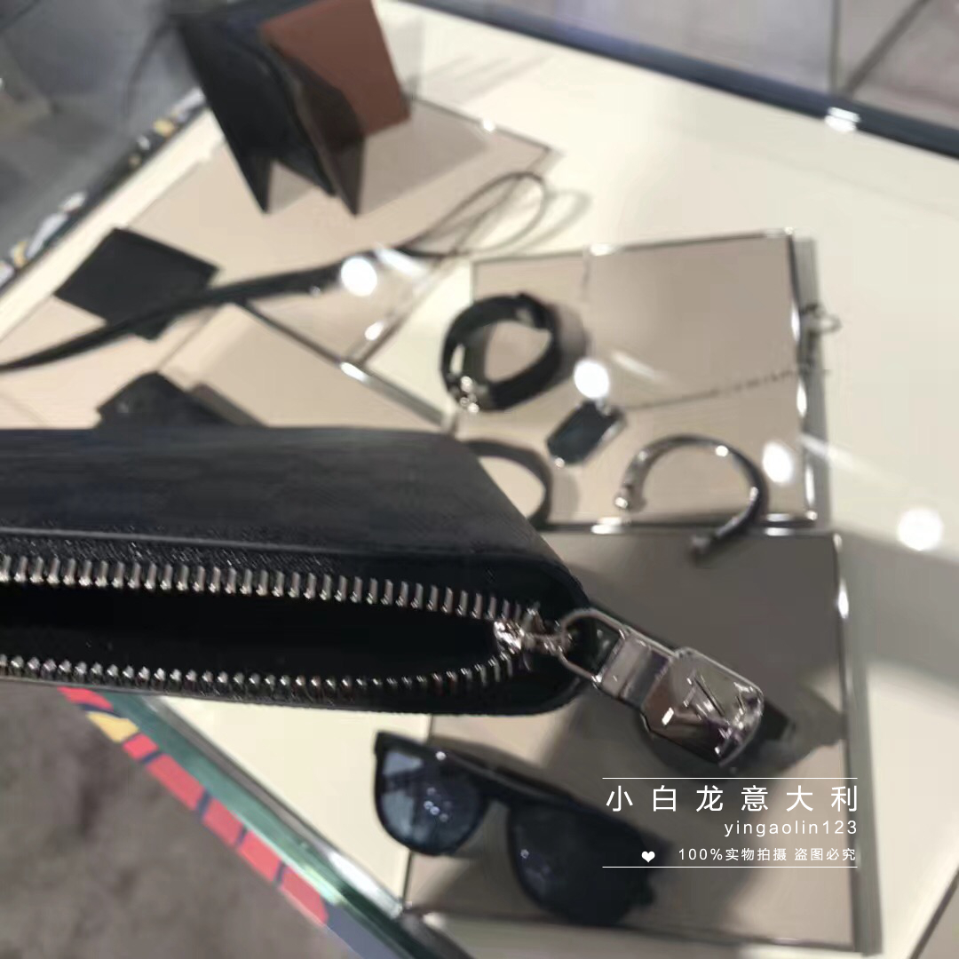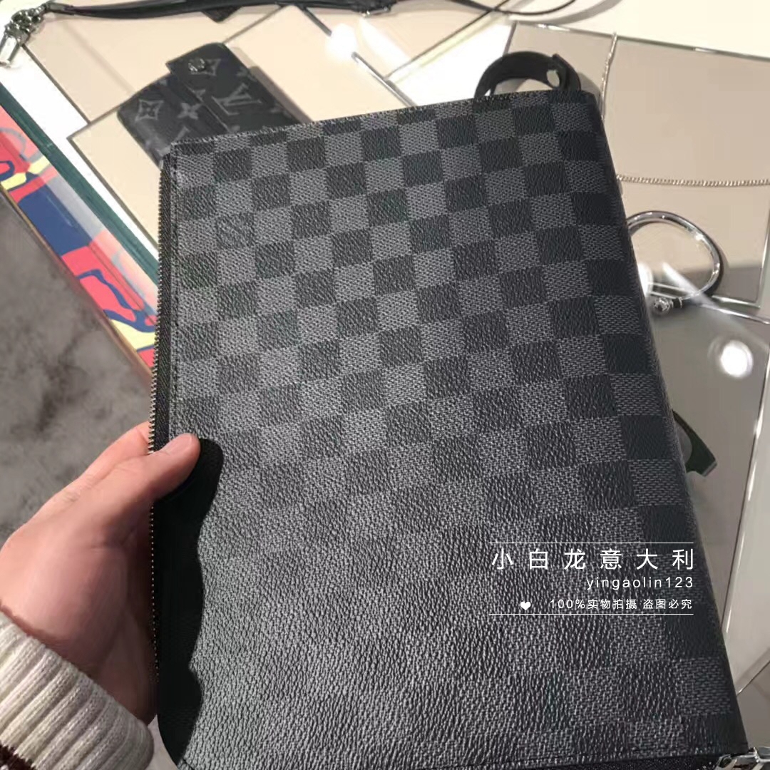 Small white dragon spot LV Louis Vuitton men's handbag black checkerboard zipper envelope bag N64437