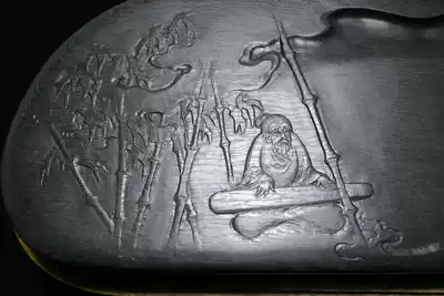 Hand-carved old pit ribbed bamboo forest voiceless inkstone Original graphite Haiwenfang inkstone Hui ink rice paper lake pen