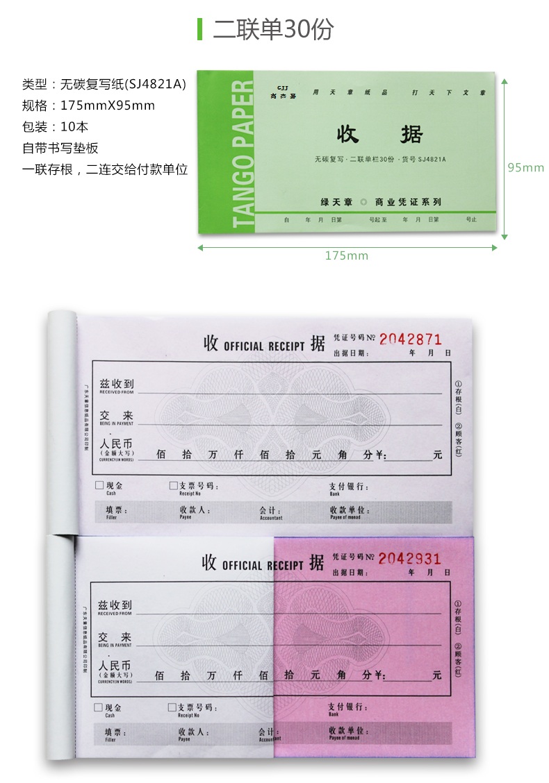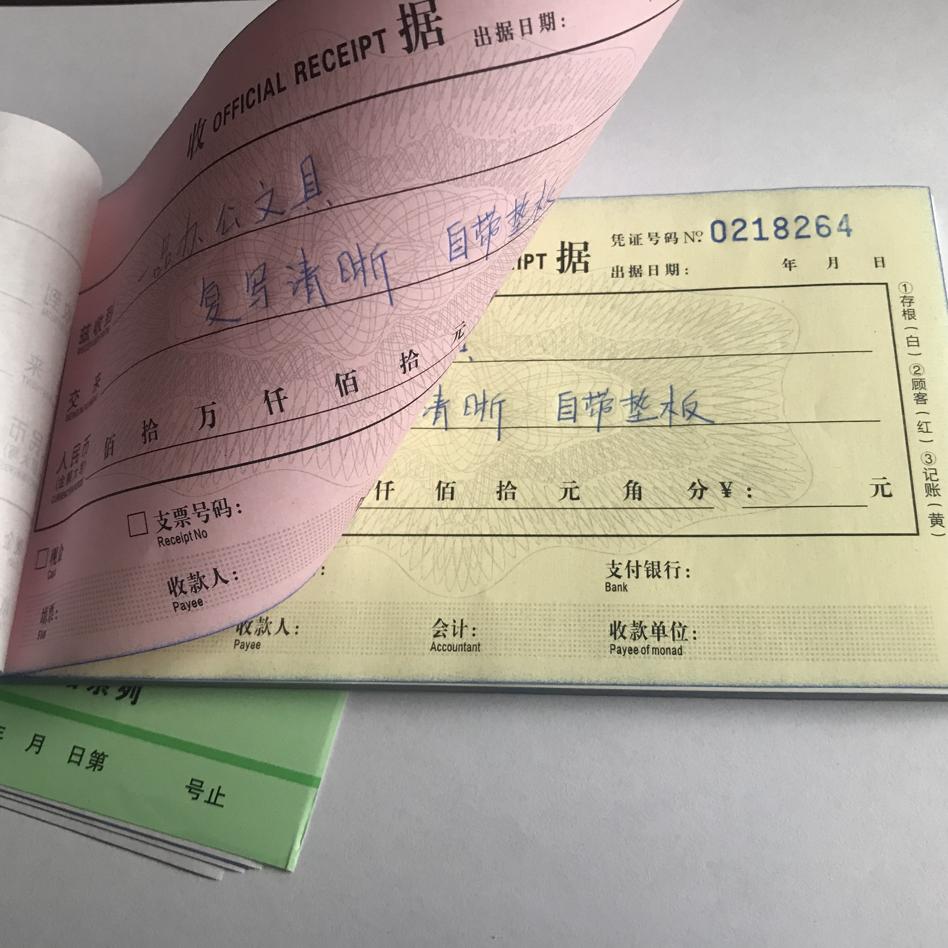 Two-part single-column receipts (10 copies) Two-part multi-column receipts (10 copies) Three-part single-column receipts (10 copies) Three-part single-column receipts (10 copies) Four-part single-column receipts (10 copies) Four-part single-column receipts (10 copies)