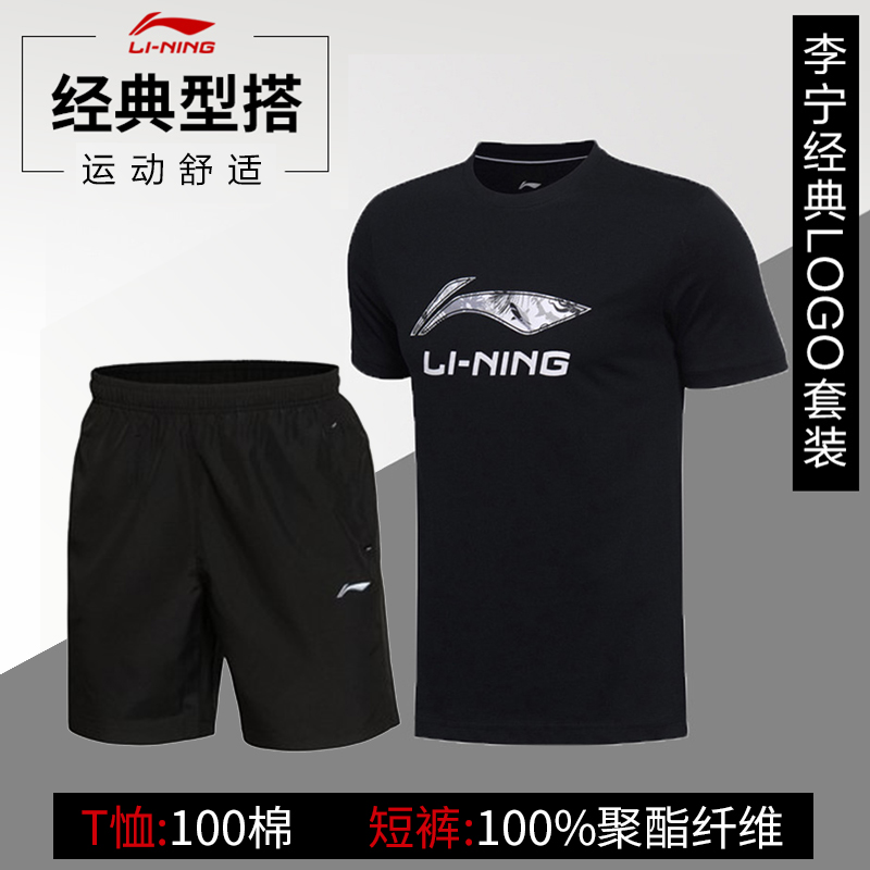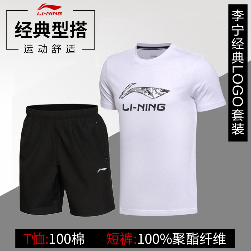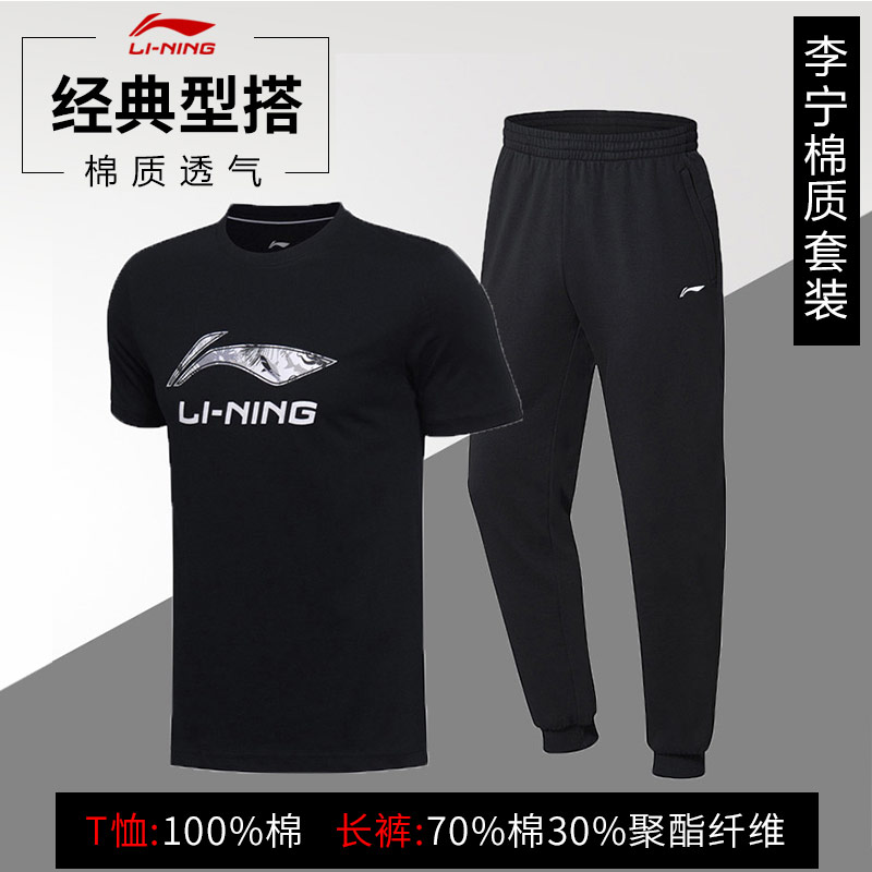 China Li Ning sports suit Men's casual sportswear Spring and summer loose two-piece t-shirt pants running suit