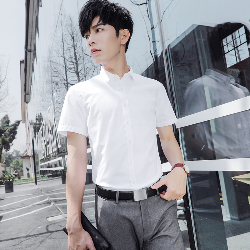 2021 new spring men's work clothes short-sleeved shirt slim business shirt white overalls solid color men's inch shirt
