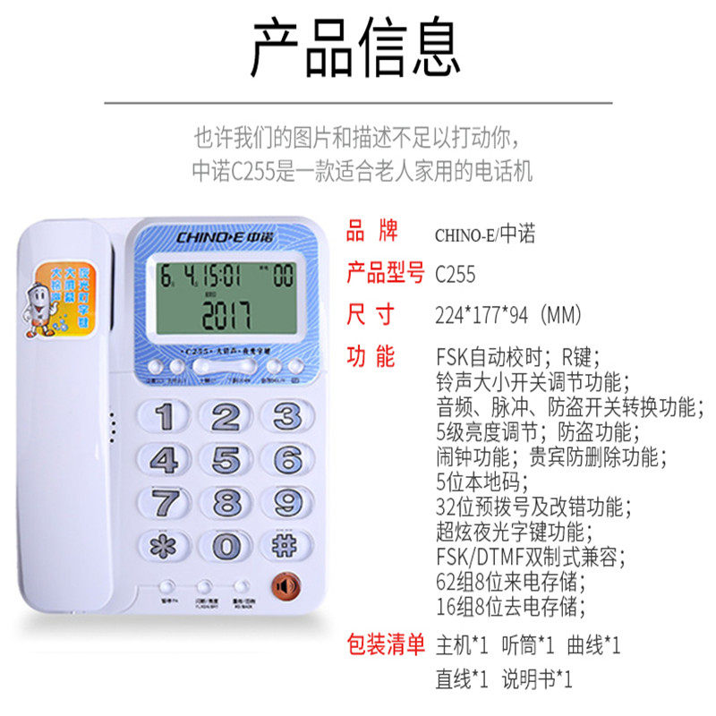 Mid-Noble Large bell telephone fixed words Cable seating style office Sound volume Size adjustment Home Elderly C255 -Taobao