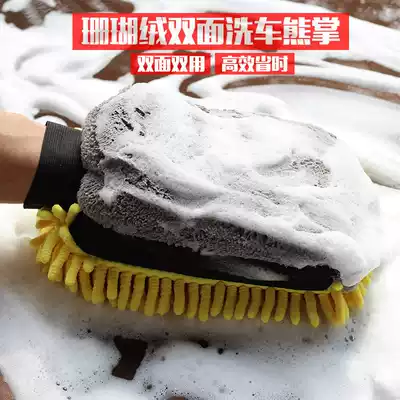 Car wash gloves plush waterproof coral velvet double-sided thickening car cleaning household dust removal car wash artifact car wash bear paw