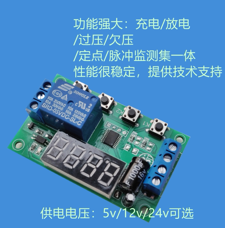 High-precision charge and discharge control module voltage detection relay switch upper and lower limit alarm 5 12 24V