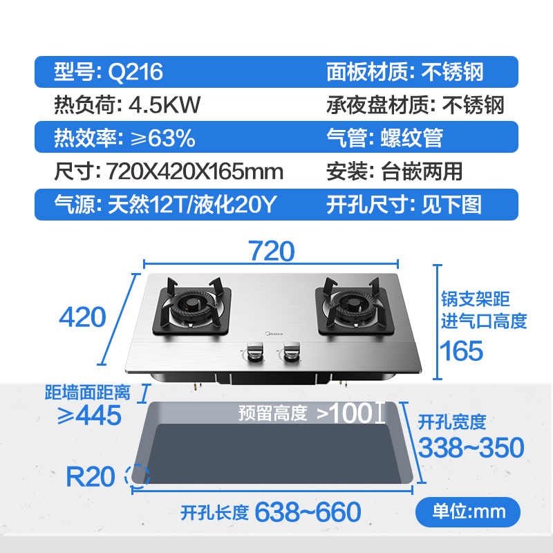 Midea Q216 gas stove stainless steel gas gas stove double stove home stovetop type liquefied gas cooker