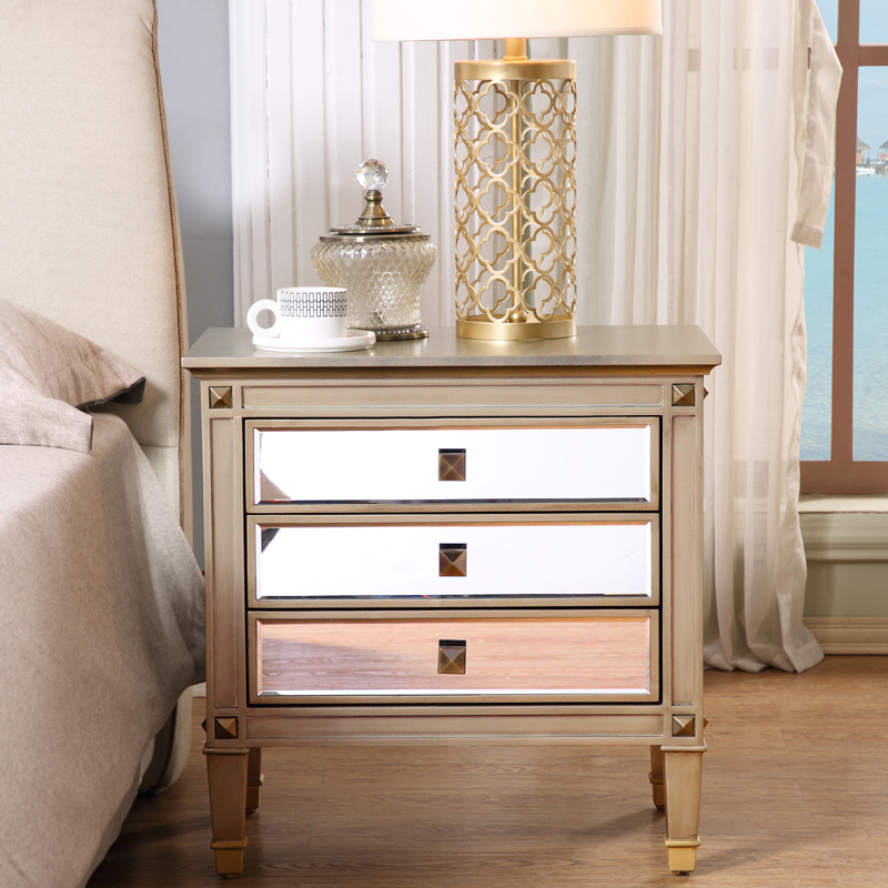 Inlock American Mirror Bed Head Cabinet Bedroom Three Pumping Solid Wood Light Cabinet Light Lavish Rear Modern Containing Cabinet Make Old