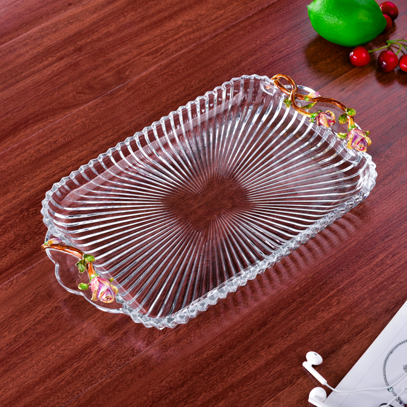 Enamel colored glass tray living room rectangular crystal creative European-style large fruit basin dried fruit round fruit tea tray decoration