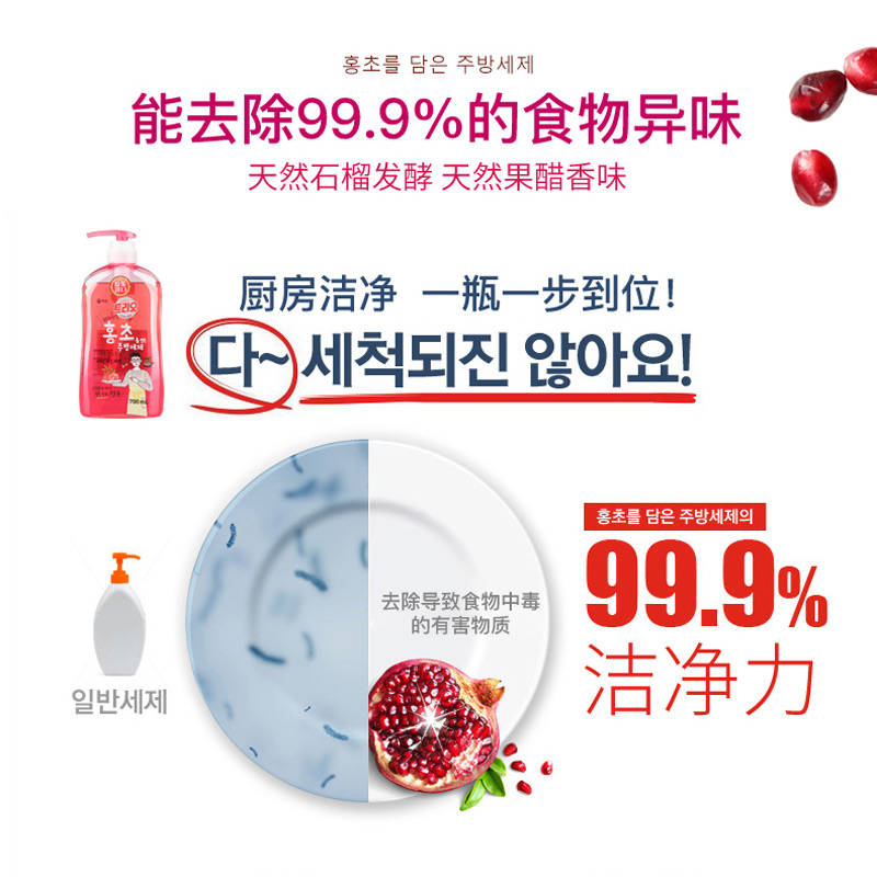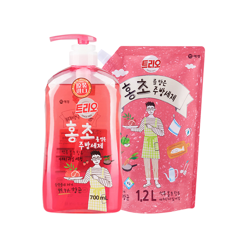 1 bottle 1 bag of Korean imported red garnet vinegar cleaning fine fruit and vegetable tableware bottle wash dishwash natural hands