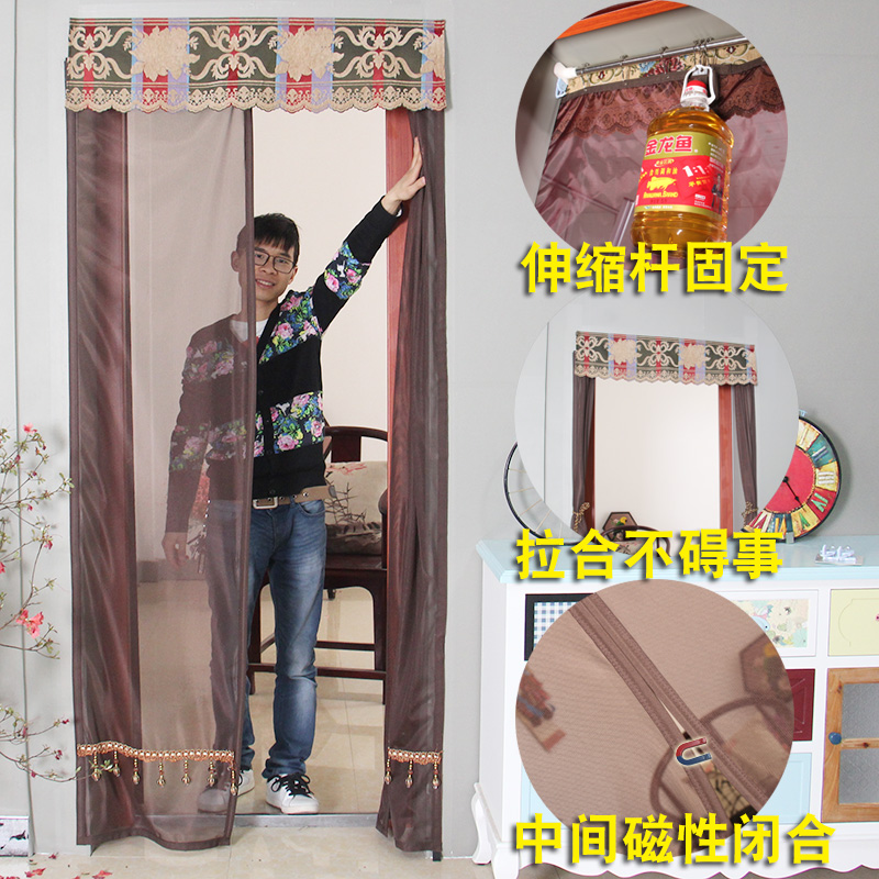 Telescopic rod anti-mosquito door curtain mesh screen curtain Magnetic screen door Living room anti-mosquito inside and outside the double door can be customized
