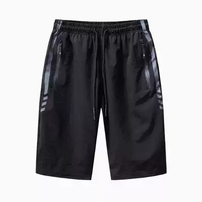 Quick-drying shorts men's large size sports pants 2021 summer Thin Ice Silk five-point pants men's beach pants zipper pocket