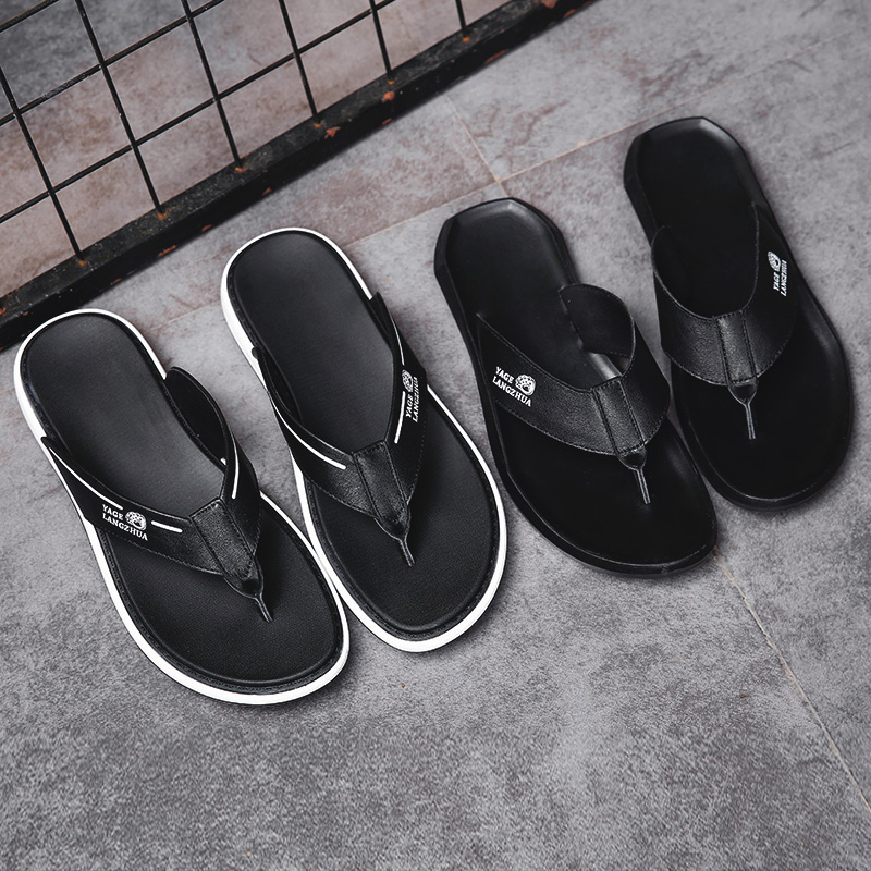 Summer Men Business Casual Herringbone drag black genuine leather face Anti-slip slippers Toes Outdoor herringbone beach Shoe