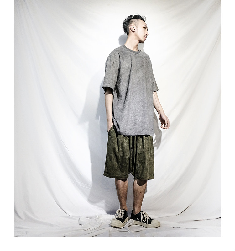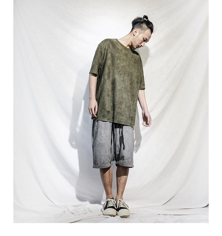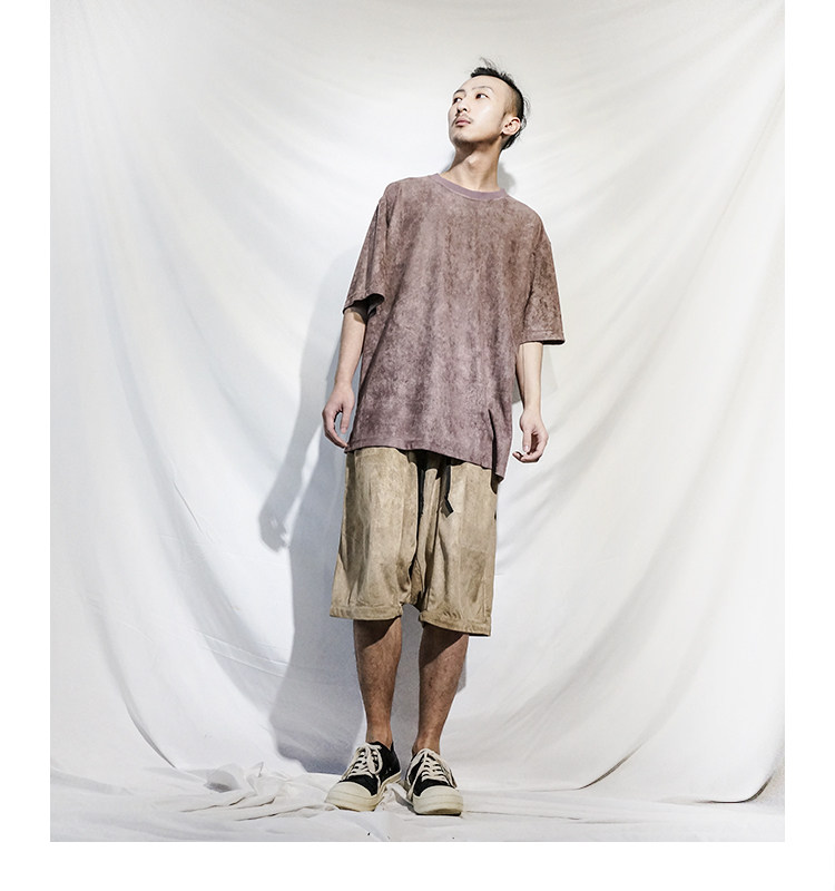 STREAMLET. CHEN:OVERSIZE TEE solid color texture smooth suede loose short sleeve t-shirt