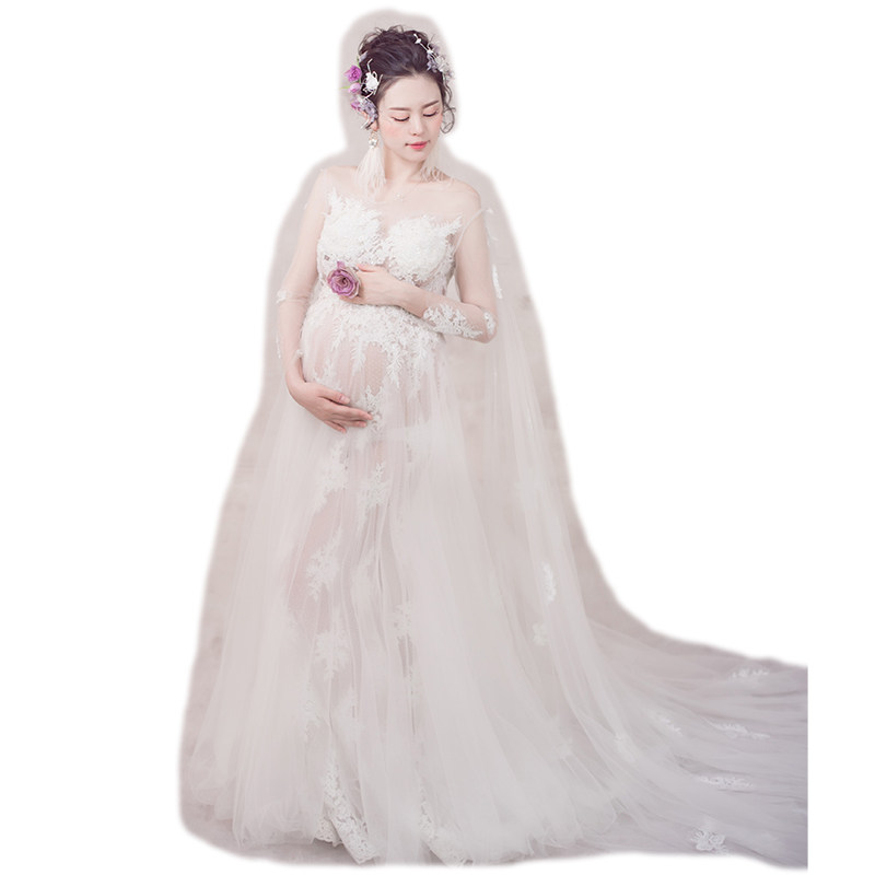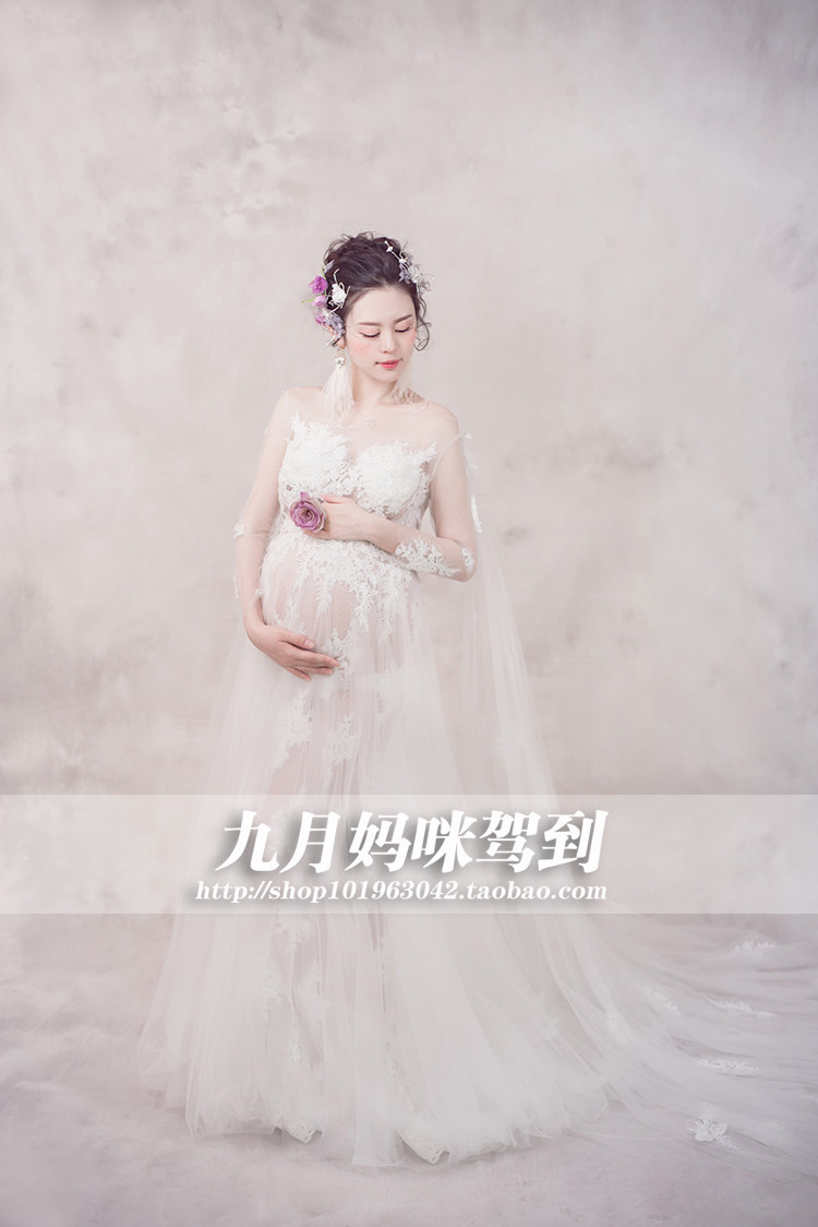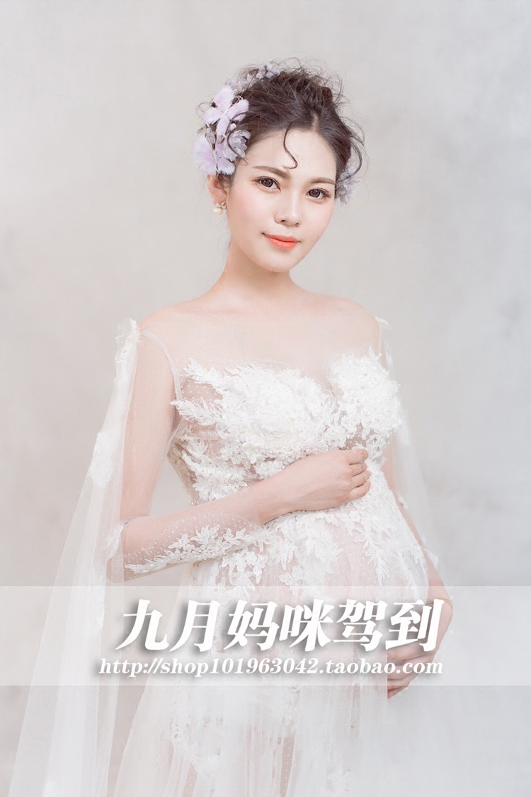 307 Pregnant Woman Photos of Clothing Rental White Lace Fairy Yarn Dresses Photo Gallery Art Writing Real Photo Photography Gown
