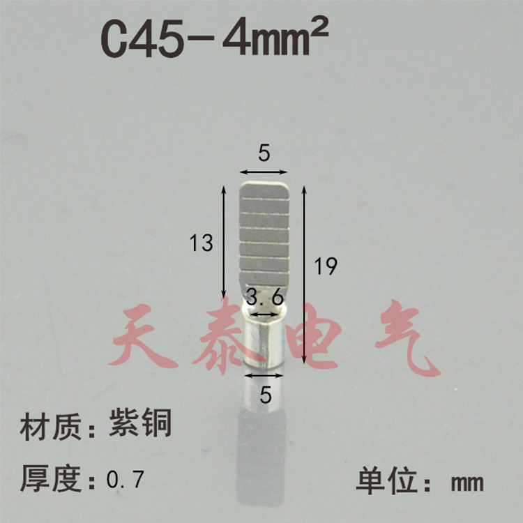 C45-4 square copper insert DZ47 air switch small black clip-shaped copper wiring nose cold-pressed end 100