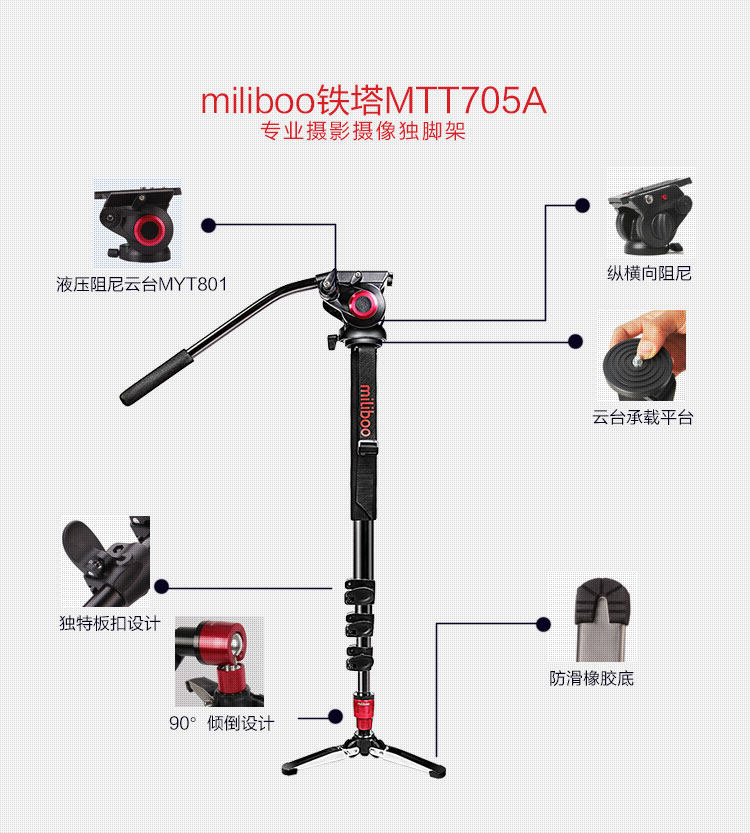 Miporiboto MTT 705A monocular photography monocular single-eye micro-film monopod with brace and tripod head