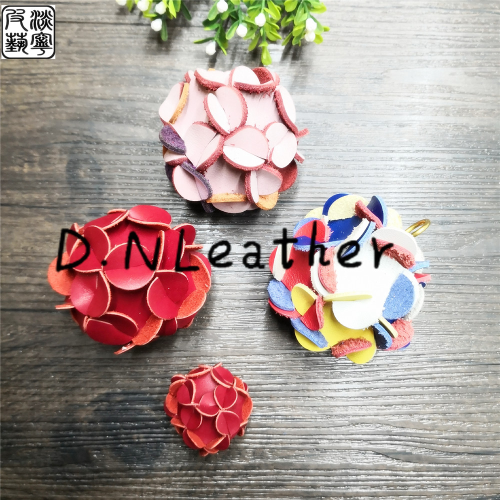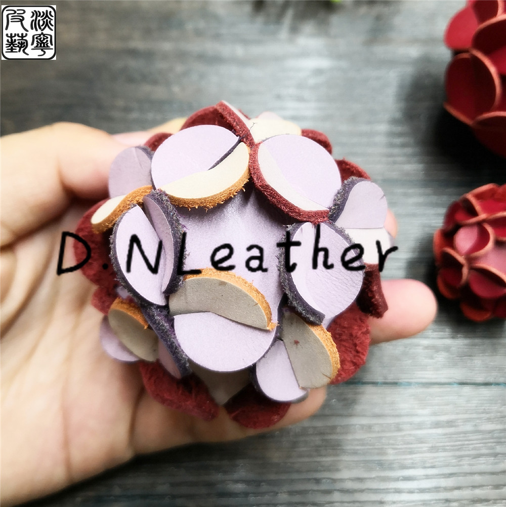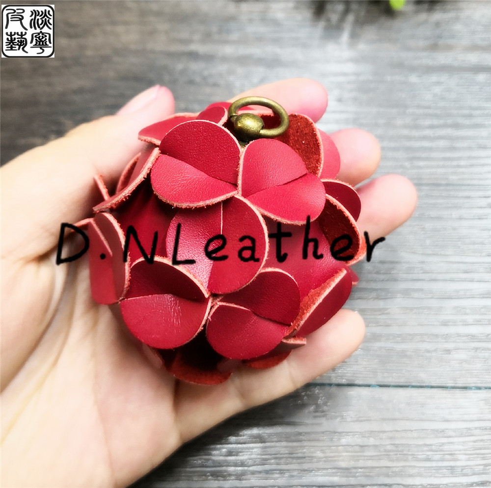 Cute cowhide hydrangea material bag DIY handmade leather to send Pure Brass belt ring monk head to send tutorial