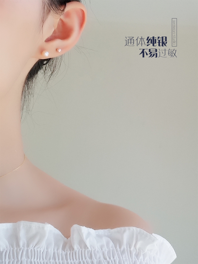 For the night natural pearl ear piercing earrings female silver 925 sterling silver simple all-match sleeping without picking earrings Q