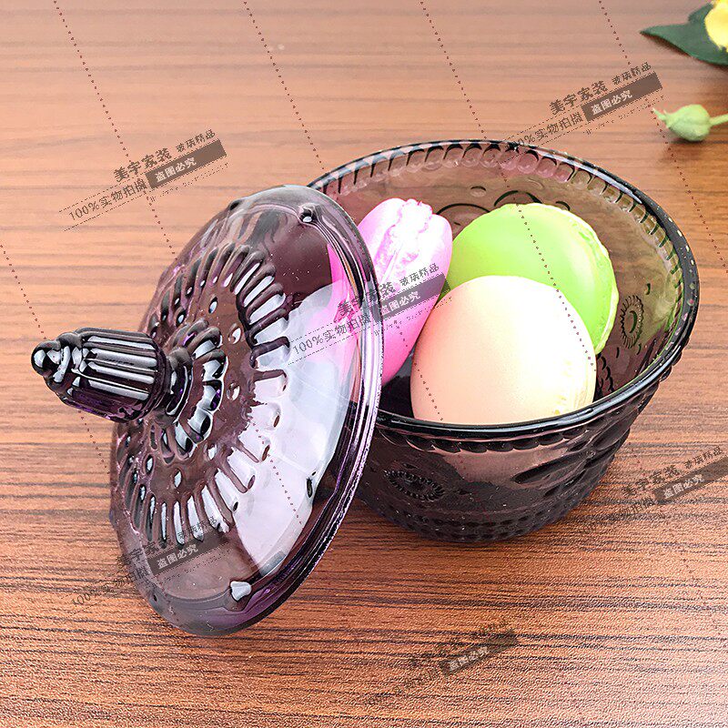 Fruit bowl with lid European retro stained glass jar Household cute princess small fresh sugar water dessert bowl