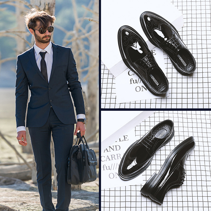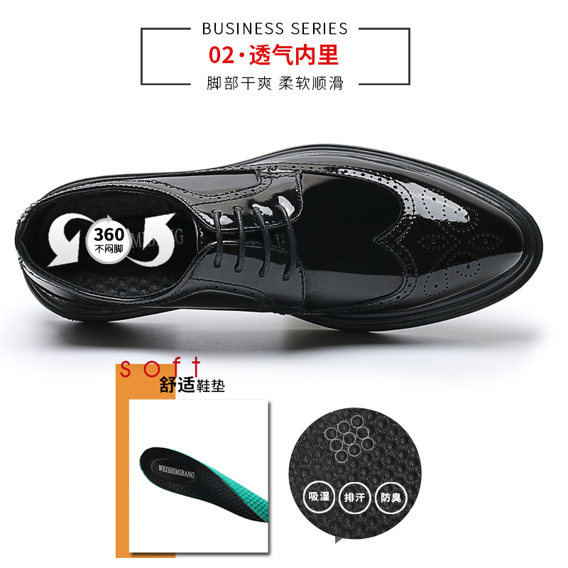 Autumn leather shoes men's business formal wear Brock British casual heightened soft bottom groom wedding men's shoes spring and autumn