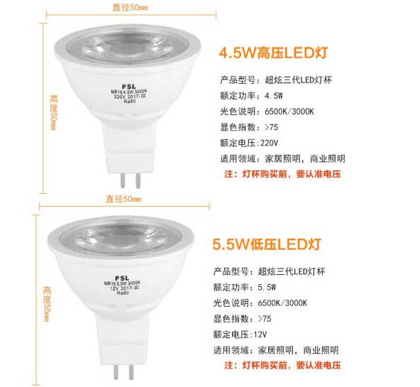 fsl Foshan Lighting LED lighting cup COB bulb high pressure MR16 lights cup 220V light slide high brightness