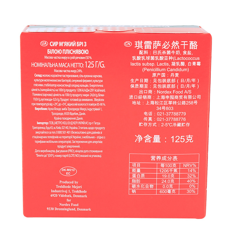 Denmark imported Kiresa must cheese cheese Brie ready-to-eat baking ingredients BrieCheese125g*3