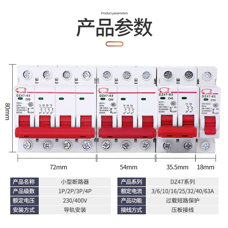 Factory direct DZ47-63 C45 air open DZ47-63S new small circuit breaker 1P 2P 3P