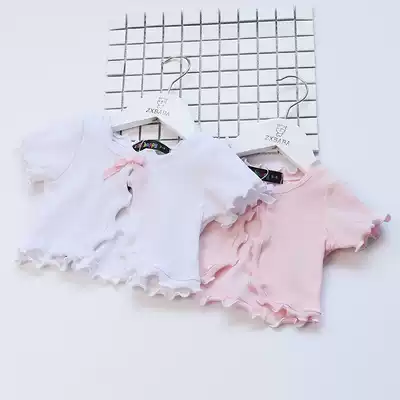 Children's wooden ear short sleeve shawl 21 Summer Girl half sleeve sunscreen cardigan Korean baby air conditioning short coat