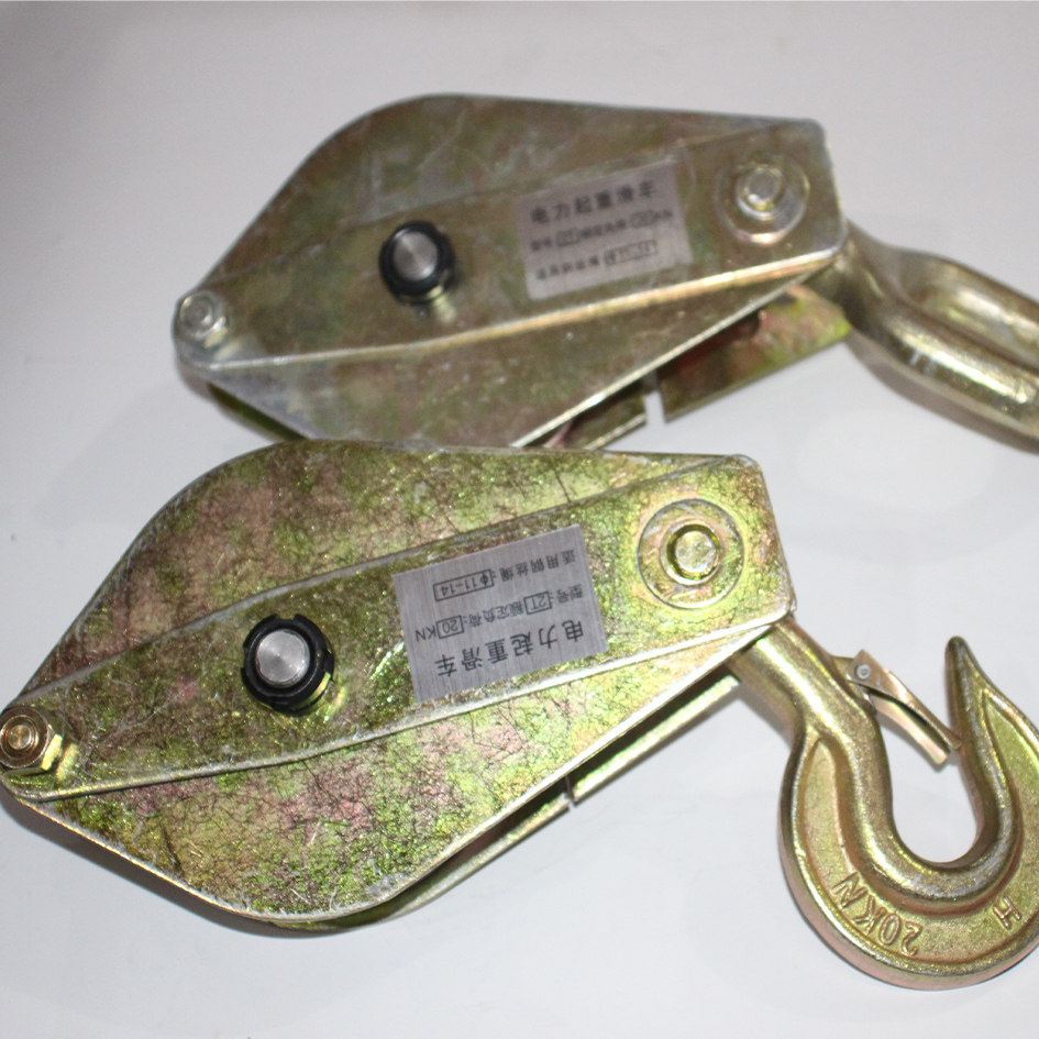 Electric power special high-speed lifting iron pulley All-steel bearing ring hook pulley Anti-smashing overhead moving pulley hook