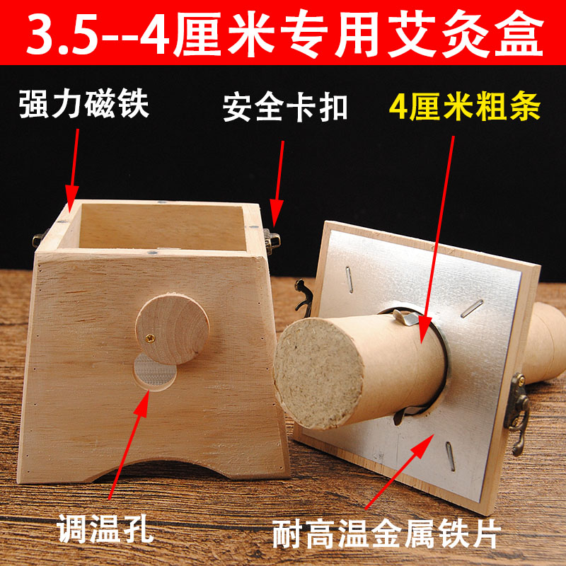 Wooden 4cm Macroporous Moxibustion Box Moxibustion Instrument Home Single Double Hole Moxibustion Instrument Thunderfire Moxibustion Apparatus Plus Coarse Ai Bar