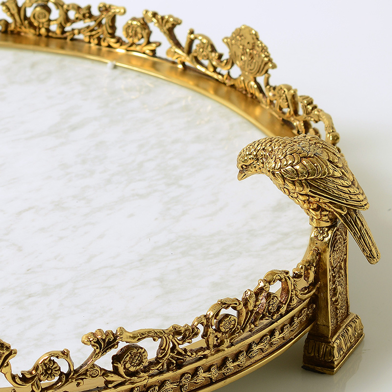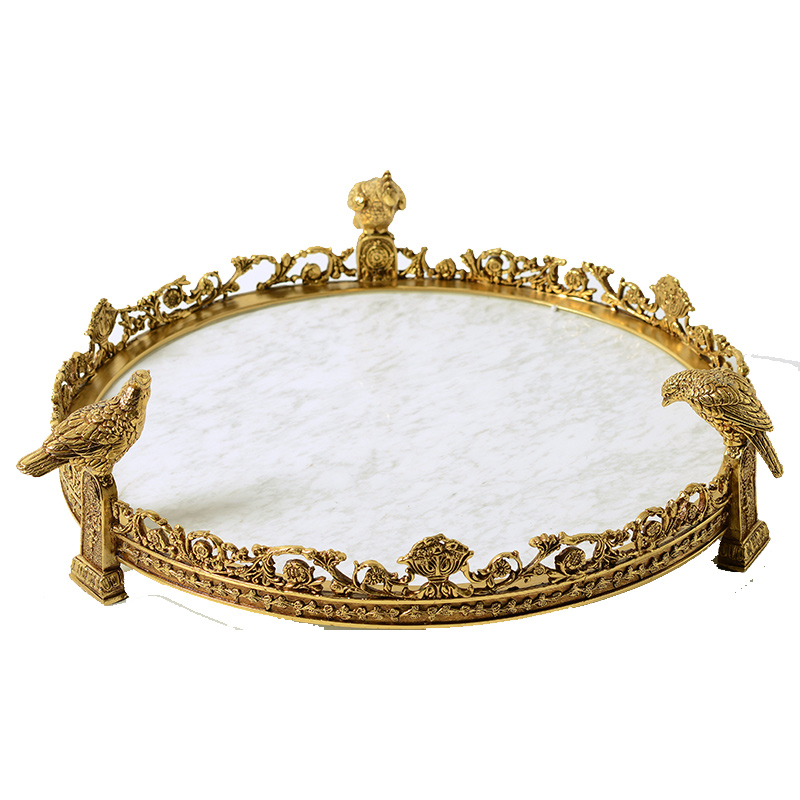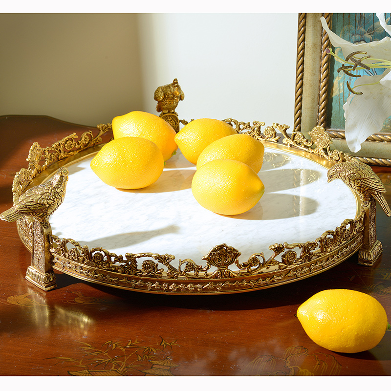 European French American marble with pure copper fruit plate tray ornaments High-end luxury decorative large tray