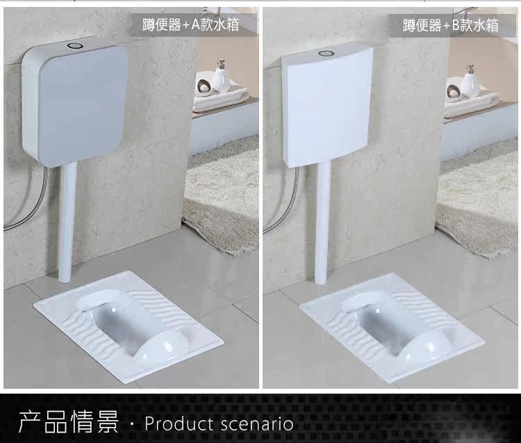 Squatting pan (with curved front drain) A water tank squatting pan (with curved front drain) B water tank squatting pan (with curved front drain) Hand valve squatting pan (with curved front drain) Foot valve squatting